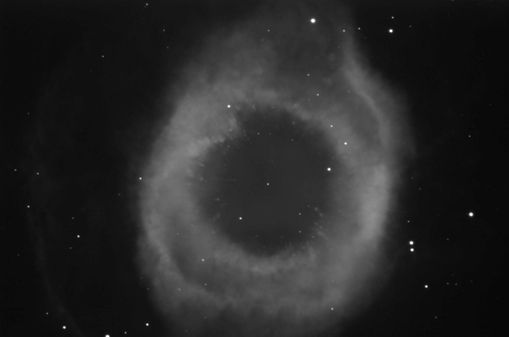 NGC 7293 Helix Nebula Date: October 7, 2006 Camera: SBIG STL6303E Filters: AstroDon Ha Camera control software: CCDSoft Focal reducer: None Guiding/adaptive optics: AO-L Camera temperature: -20C Image Acquisition Software: CCDAP3 Telescope: RCOS 16 Carbon Tube, Aries optics, F9 with Field Flattener Telescope control software: RCOS TCC, TheSky6 Mount: Paramount ME (MKS 4000) Subexposures: Total exposure time: 150 minutes Ha: 15 x 10 minute, binned 1x1 Conditions: average seeing. Processing: CDSoft, MaximDL, MiraAP, Photoshop CS2. |